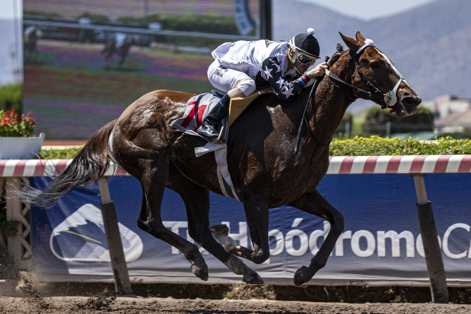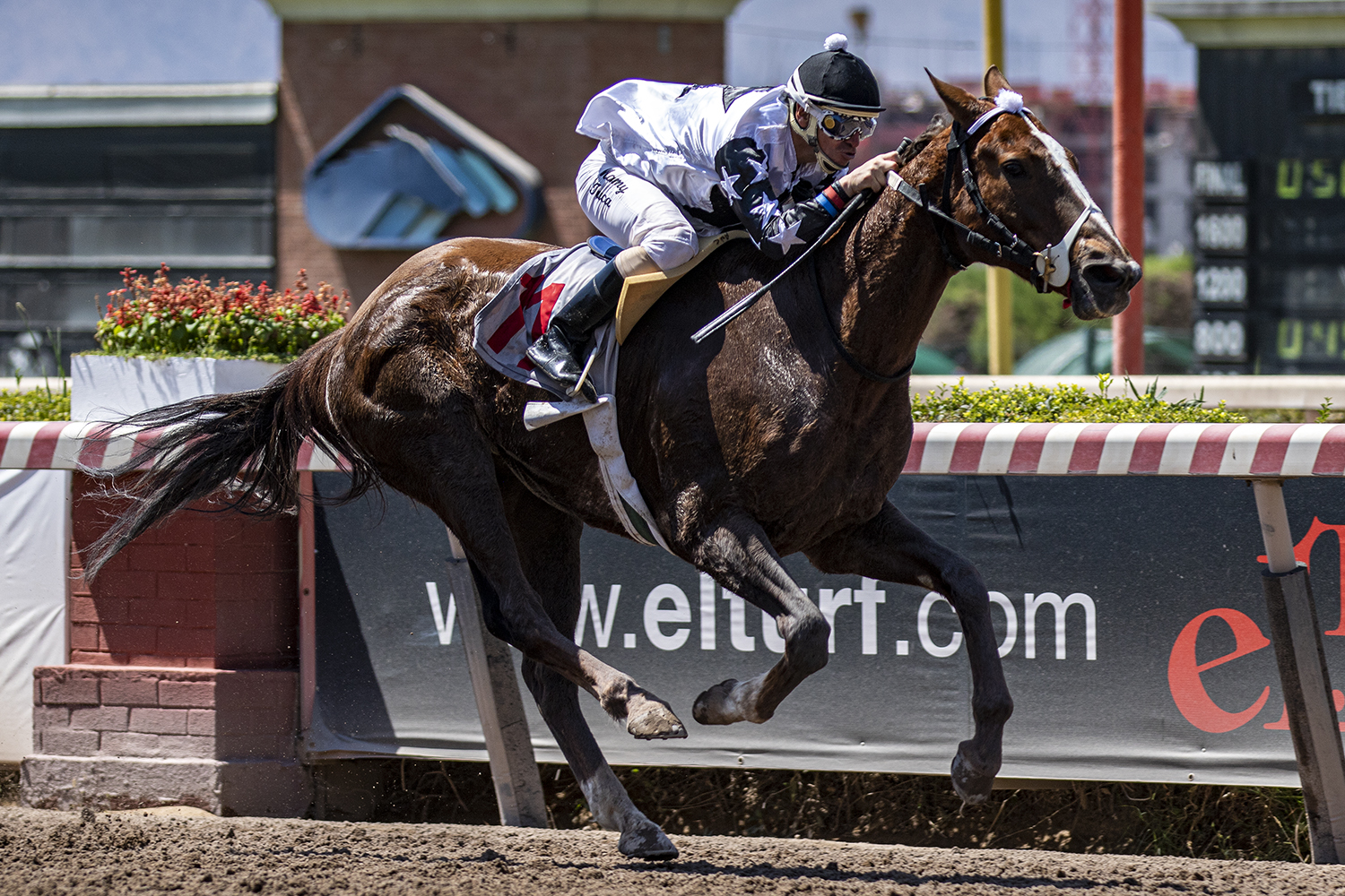 Hija de Aragorn (Giant's Causeway) gana Handicap (1000m-Arena) para caballos de 3 años y más en el Hipódromo Chile. Criada en el Haras Dadinco y montada por Andrés Covarrubias R., derrotó por 3½ cuerpos a Tata Antonio (Gstaad II), en tercer lugar llegó Si Se (Henrythenavigator) a 3½ cuerpos y en cuarto lugar Kirsh (Authorized) a 3¾ cuerpos. La representante de las sedas del Stud Cristopher David es entrenada por Mario Covarrubias, marcó 1.00.54 para la distancia, pagando 5.90 a ganador.