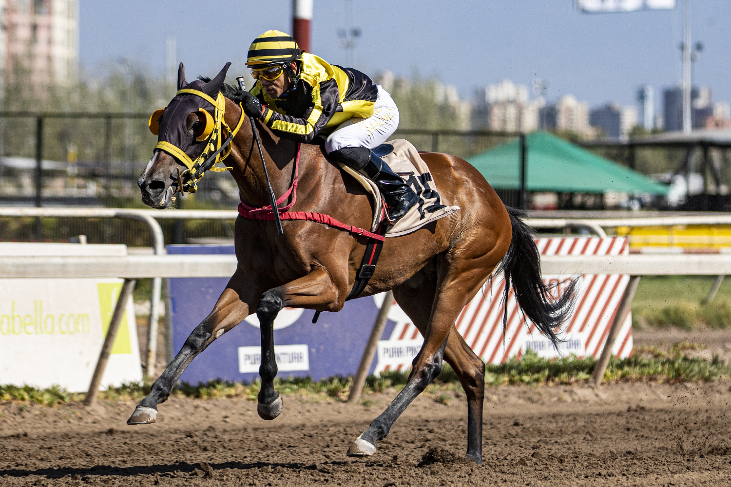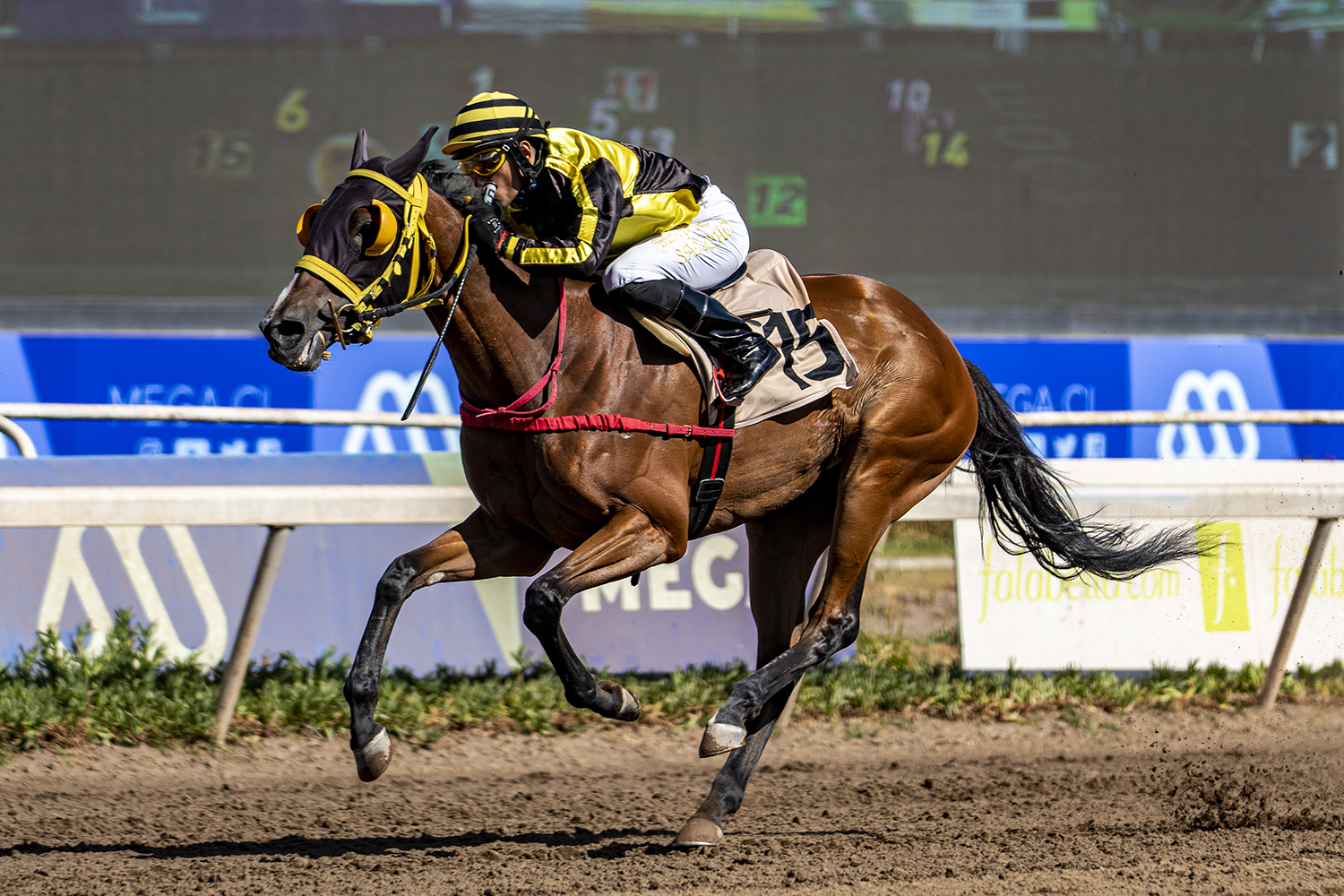 Hija de Aragorn (Giant's Causeway) se queda con Handicap (1200m-Arena) para caballos de 3 años y más que se disputó en el Club Hípico de Santiago. Oriunda del Haras Dadinco y montada por Benjamin Sancho, aventajó por 3½ cuerpos a Prendelo Negro (Soldier Of Fortune), en tercer lugar llegó Fina Compañía (Fast Company) a 4½ cuerpos y en cuarto lugar Ron Carlitos (Ocean Terrace) a 6½ cuerpos. La representante de las sedas del Stud Oly Nany es preparada por Guillermo Peralta P., registró 01.11.41 para la distancia, pagando 21 a ganador.
