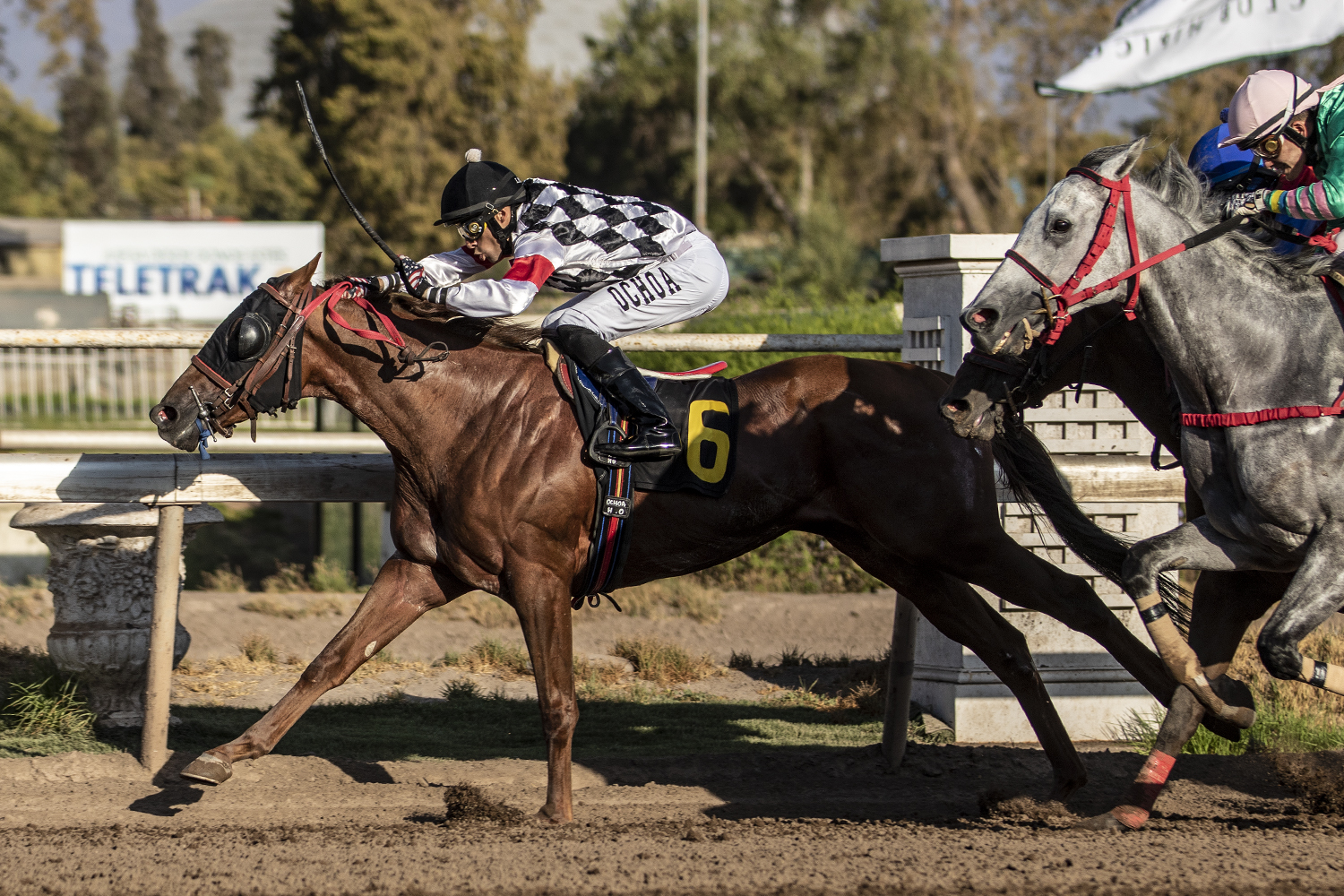 El representante de las sedas del Stud Legacy se quedó con la victoria en Handicap (1000m-Arena) para caballos de 3 años y más en el Club Hípico de Santiago. Conducido por Hugo Ochoa y entrenado por Sergio Inda M., aventajó por ¾ cuerpo a Pushkin (Lookin At Lucky), en tercer lugar llegó Fuente De Fortuna (Holy Roman Emperor) a ¾ cuerpo y logró el cuarto puesto Mi Diego Armando (Grassy II) a 2¼ cuerpos. El alazán nacido en el Haras Dadinco, marcó 01.01.77 para la distancia, pagando 15.1 a ganador.